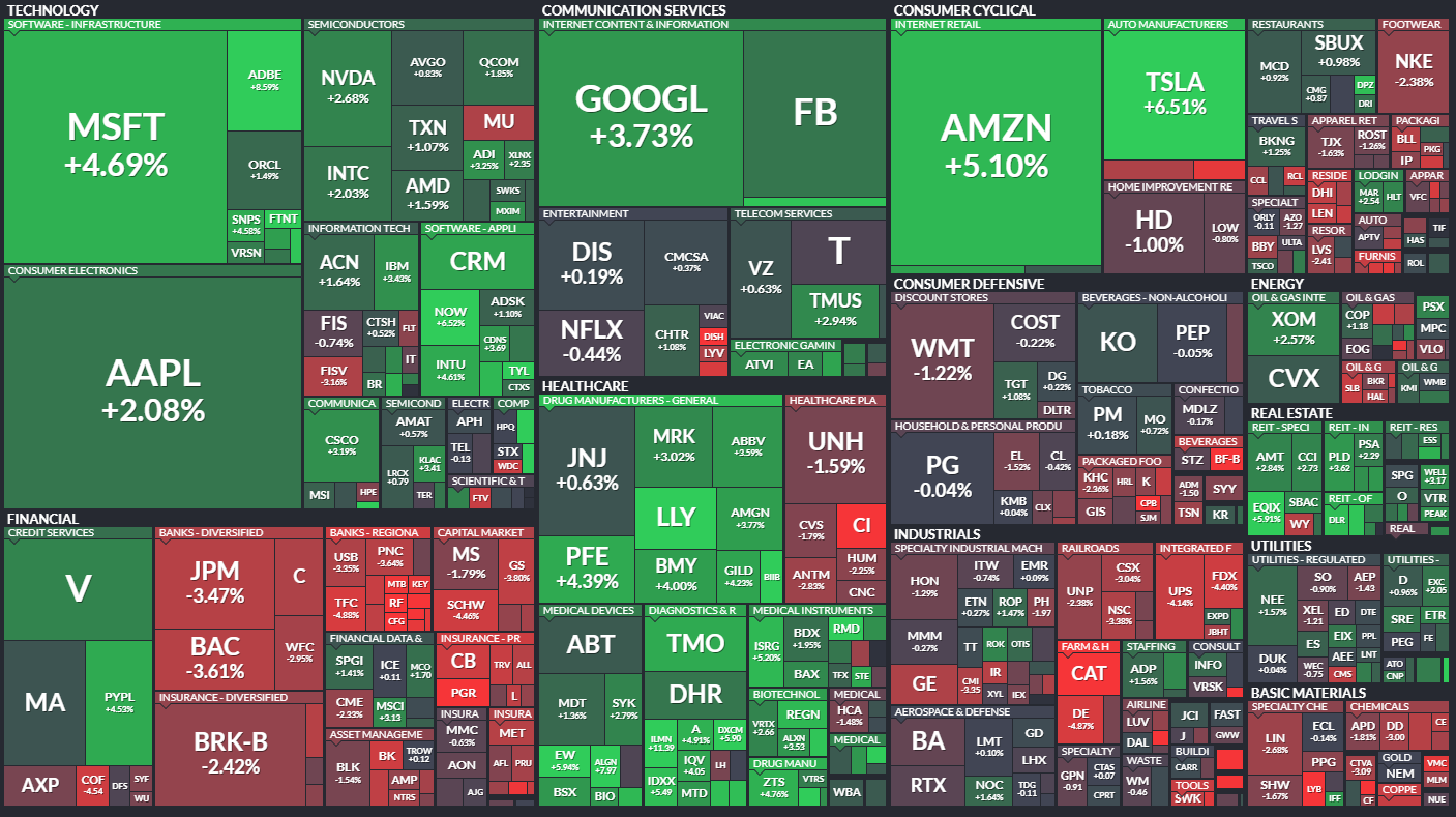 テクノロジーや金融セクターが上昇しました。