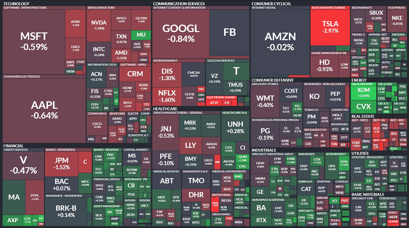 昨日とは反対に、S&P500種構成銘柄の大半が上昇しましたが、影響力の大きいビックテック企業の下落がS&P500指数の足を引っ張りました。