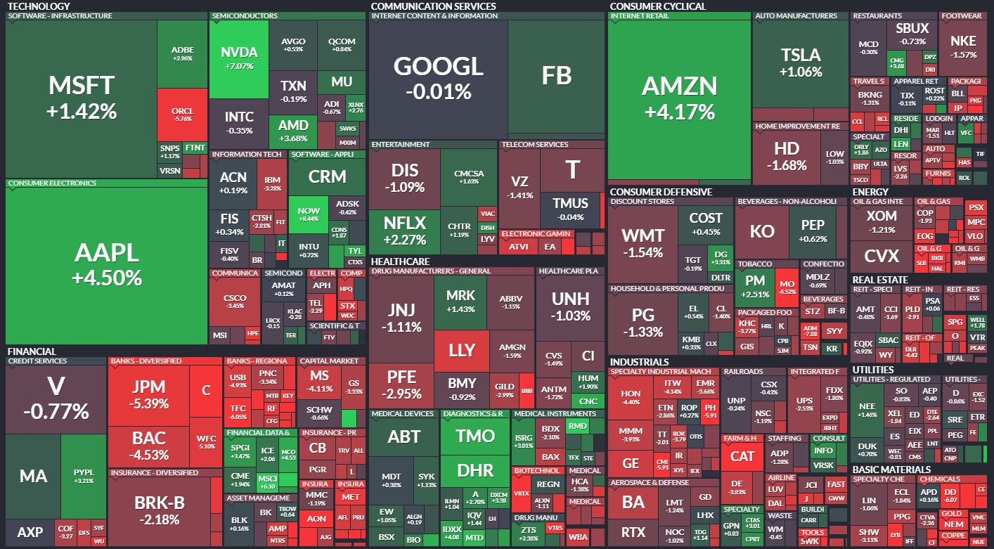 テクノロジー、ヘルスケア、通信サービス、一般消費財、不動産セクターが上昇。