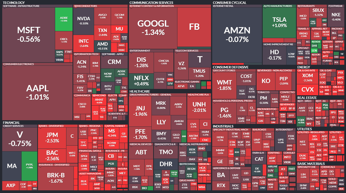 特にエネルギー、金融、公益セクターは2%以上の下げ。