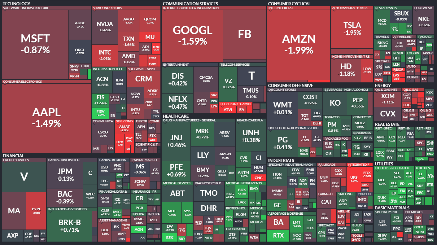 テクノロジー・通信サービスは1%以上下落。