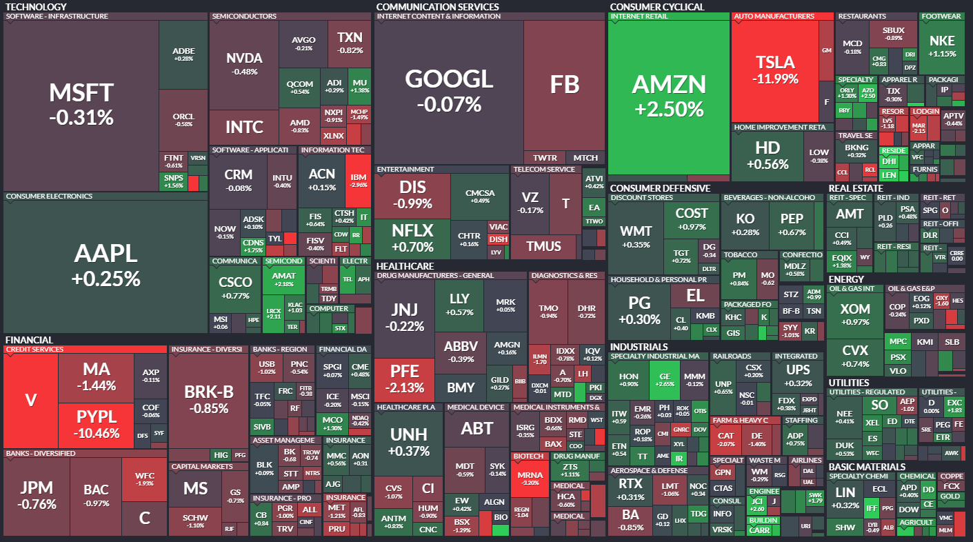 影響力の大きいテスラの-11.99%に引きずられて、一般消費財が下落。