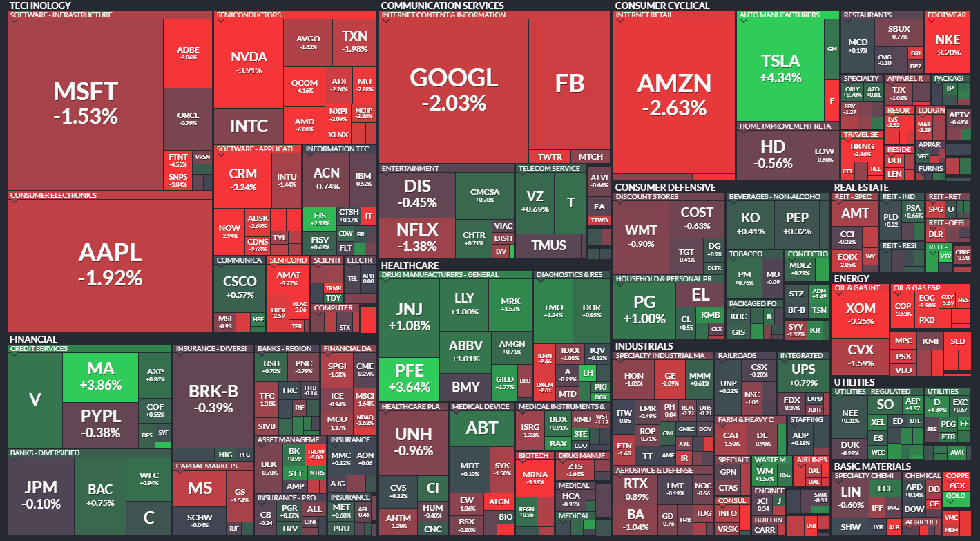 小型株のラッセル2000は-1.55%と市場よりも下落。