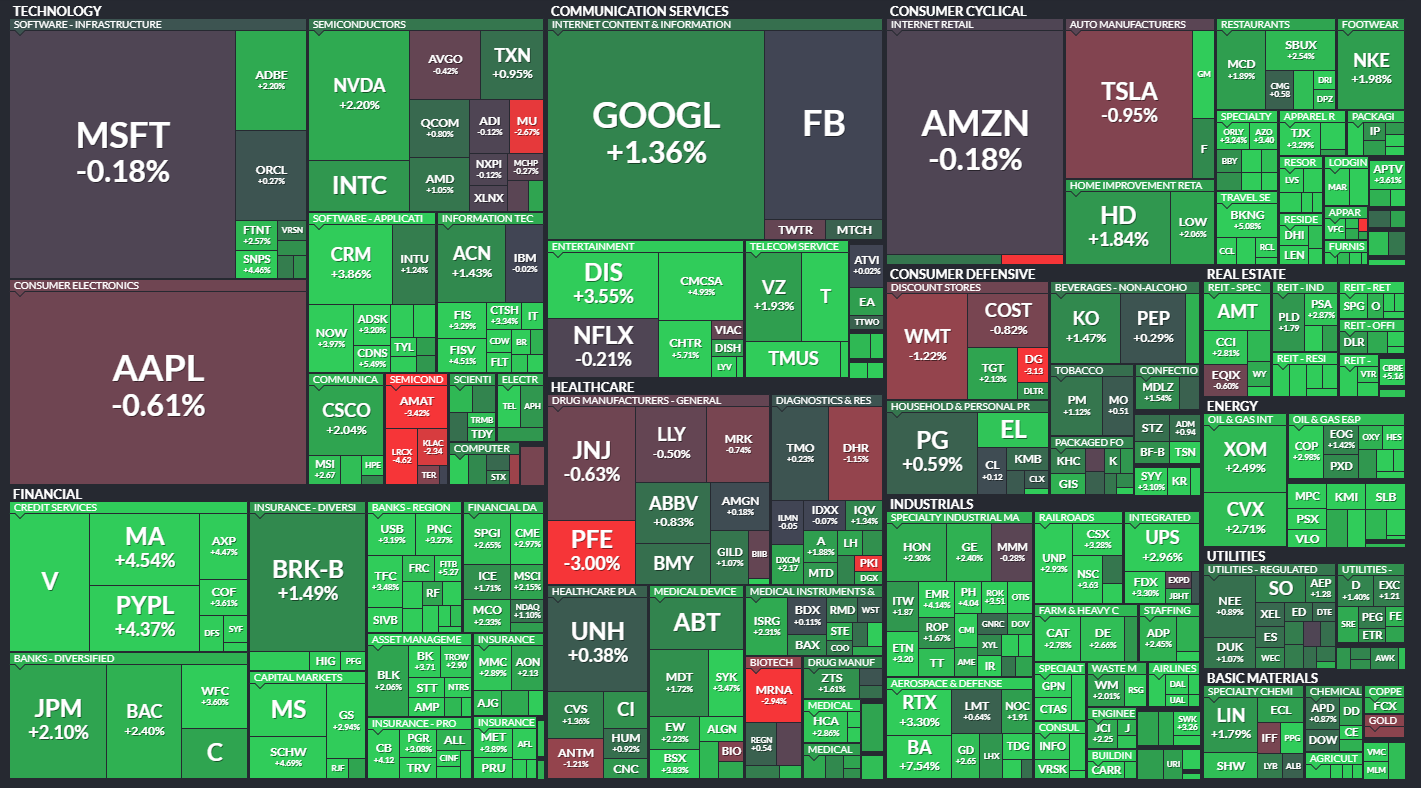 S&P500の90%以上の企業が上昇しました。