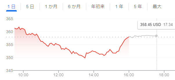 終わってみれは、ほぼ横ばいとなったS&P500ETF(VOO)でしたが、一時349.79まで下がるなどボラティリティの高い相場が続いています。