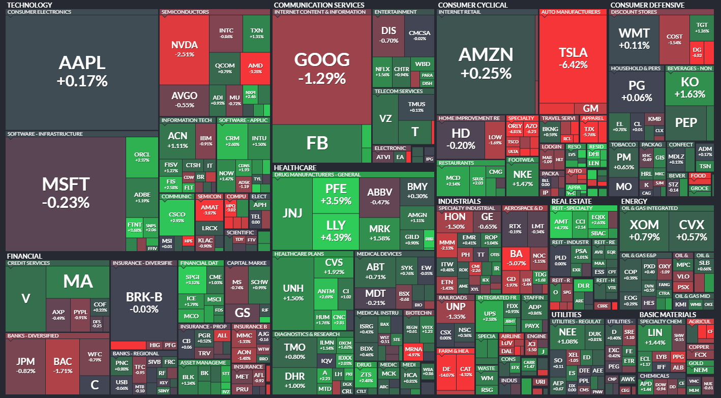 一方、ファイザー+3%、イーライリリー+4.4%などヘルスケア企業が指数を下支えしました。