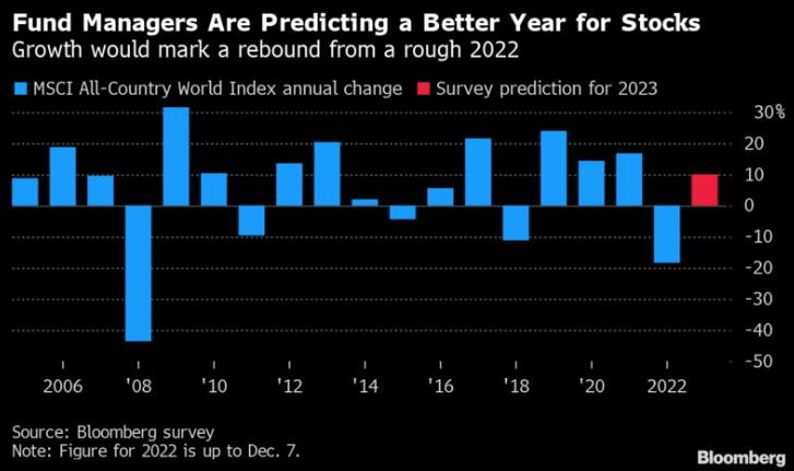 回答者の71%が来年の株価上昇を予想。下落予想は19%でした。上昇を見込む回答者は平均で10%のリターンを予測したそうです。