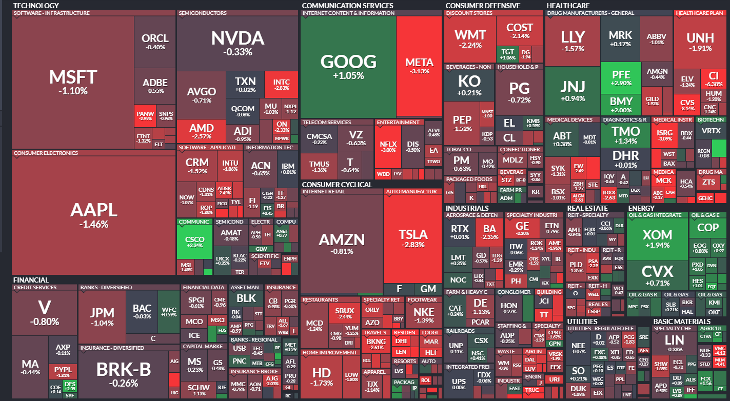 昨日に続き堅調な経済指標を受け、金利が長期間高止まりするとの懸念が株価を押し下げました。