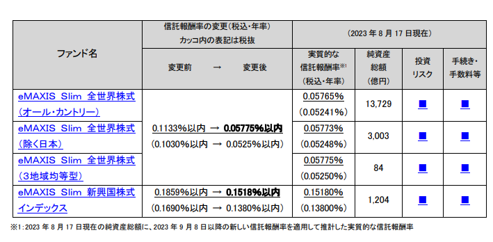 スリム全世界株式「3兄弟」がそろって信託報酬の引き下げとなりました。
