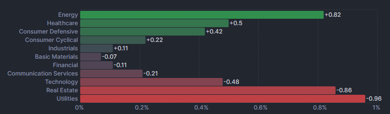 エネルギーセクターが大きく上昇する一方で公益が下げました。