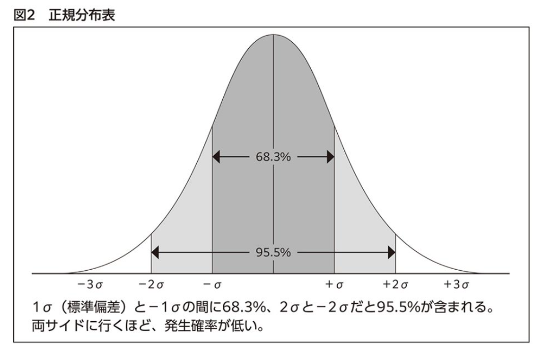5%の±40%の範囲(‐35~+45%)に95.5%の確率で収まり(2標準偏差)