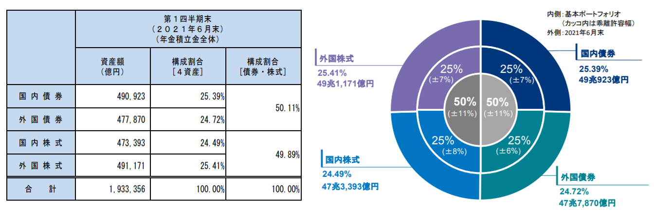 GIPFは基本的に国内外の株式と債券の4資産クラスで運用されているということです。