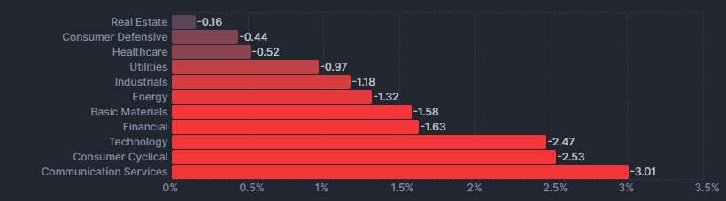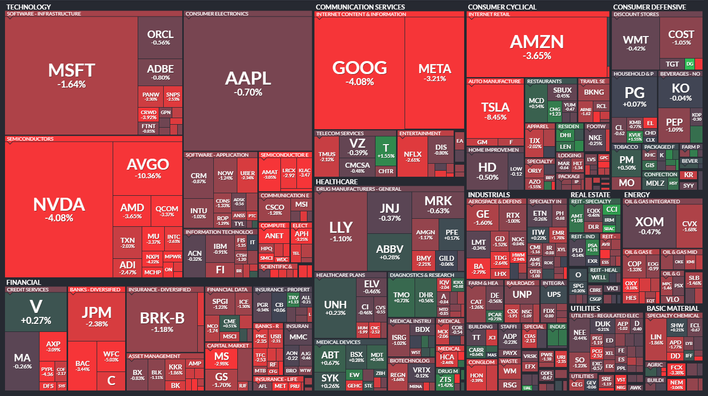 ナスダックはより大きく下落。マグニフィセント・セブンを含む主力の大型成長株の下落が各指数を押し下げました。