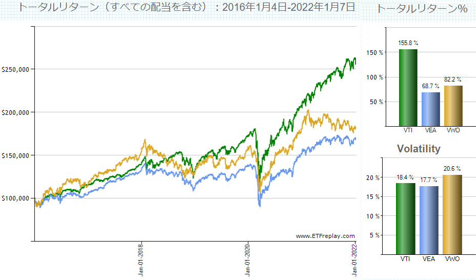 新興国指数は+161.56%のリターンを記録しました(ドルベース)。