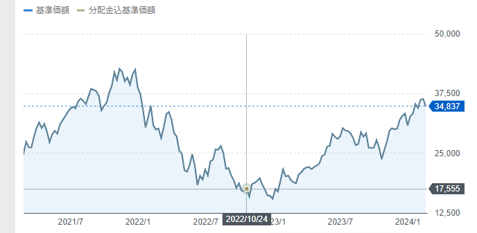 その後は教科書通り、利上げでレバナスのリターンはズタボロになりました。