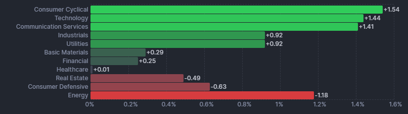 ラッセル2000は+0.62%と小型株も上昇。
