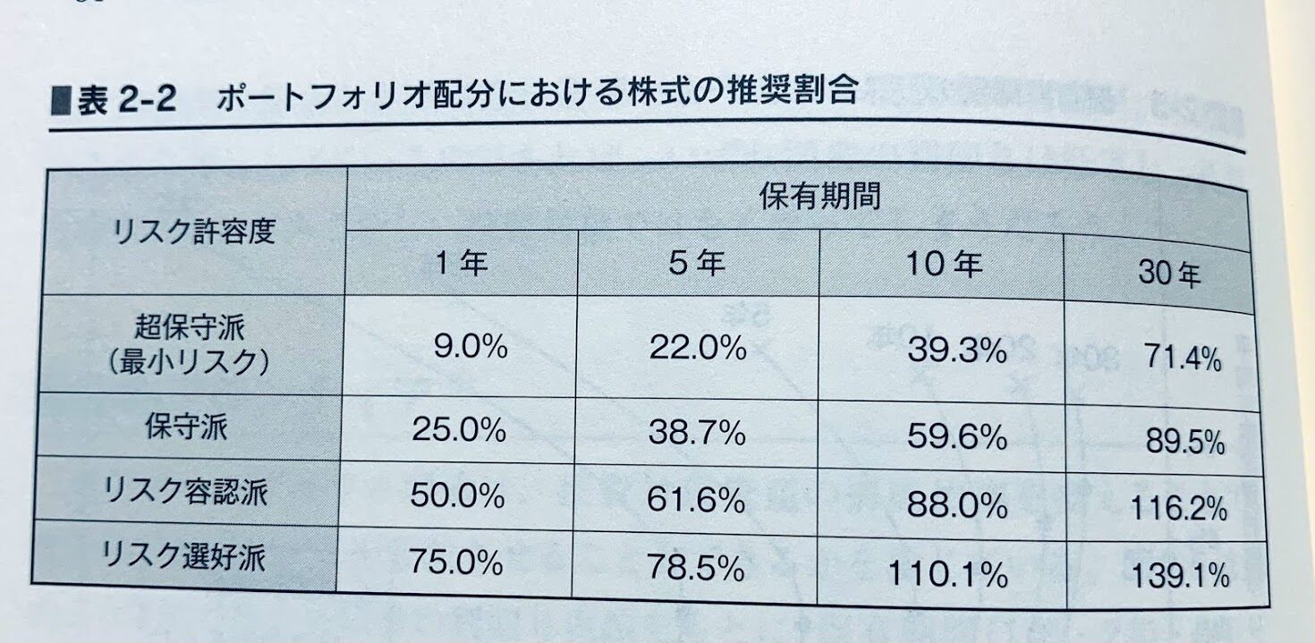例えば、リスクを選好している投資期間が10年以上の投資家は、「ポートフォリオの100%以上を株式に割り当てるべき」という結果になっています。