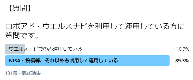 ウェルスナビのみで運用している方の割合は実はあまり多くなく、